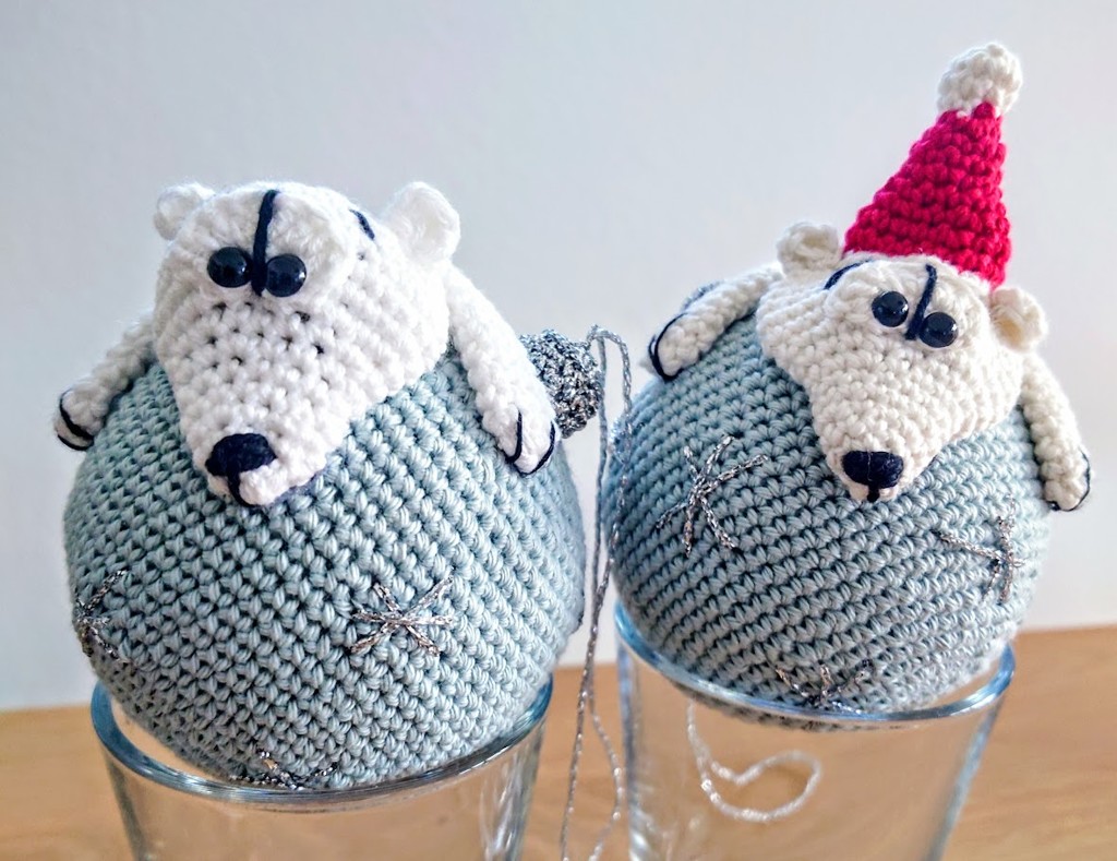 Denne opskrift guider dig trin for trin til at hækle en dekorativ julekugle med fine detaljer – inklusiv den søde isbjørn, ører, snude og dekorative striber. Perfekt som håndlavet pynt til juletræet, som værtindegave eller som en personlig gave til en, der elsker hjemmelavet julepynt. julekuglen har et rundt og blødt udtryk, og de små broderede snefnugdetaljer gør det ekstra unikt og magisk.