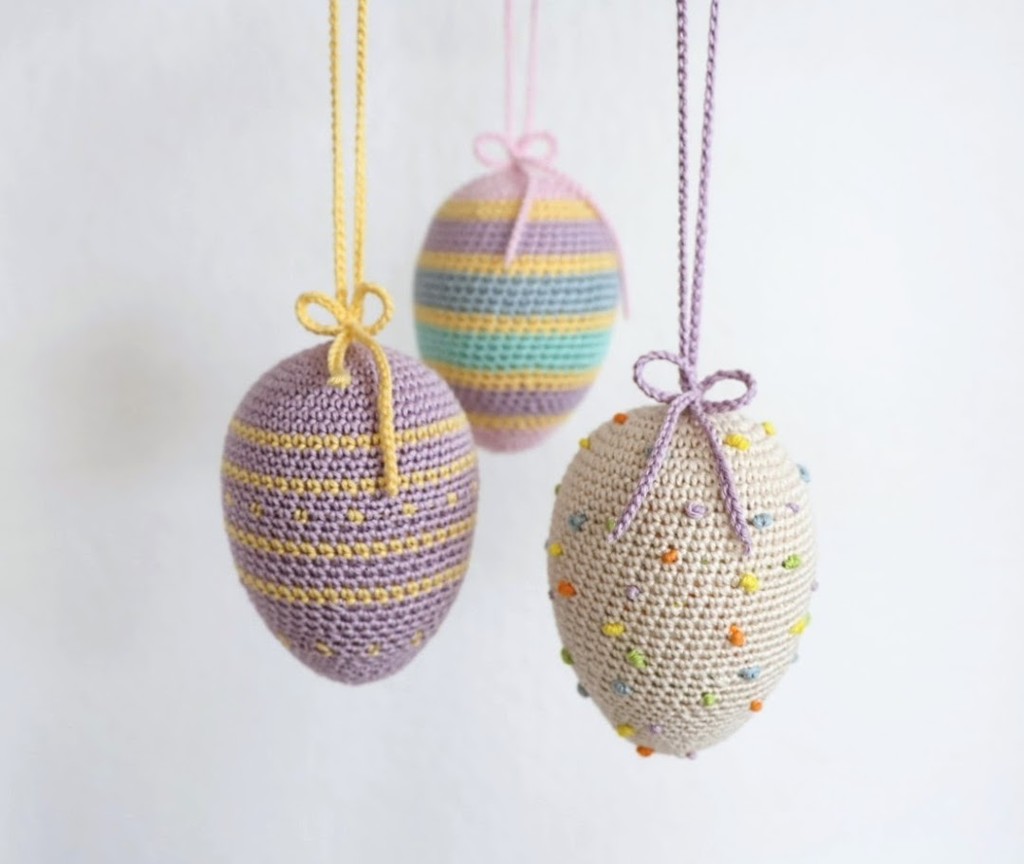 I opskriften hækles der med 8/4 bomuldsgarn og der bruges 10 cm. styroporæg